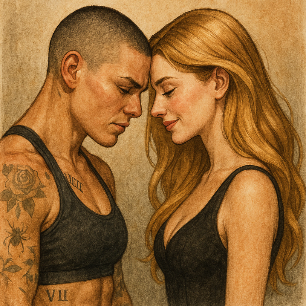 “I look like a beast next to you.” Kiki had frowned when they were standing off to the side, waiting for their first scene shoot. Kiki certainly did not fit the bill of a beautiful woman in the world-dominating male gaze, not even close. She was tall, muscular, all angles and sharpness. Her dark hair was shaved close to her scalp, her thick brows that framed her moss green eyes, both bisected by scars. She had an old wound thick with scar tissue under her left eye and a newly healed one on the bridge of her slightly crooked nose.